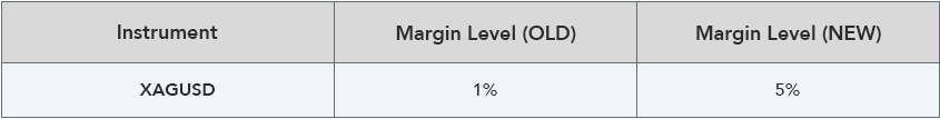 Please be aware that to keep open positions of XAGUSD is required a higher margin requirement during this volatile period, we recommend clients to properly control their positions and trade cautiously.
